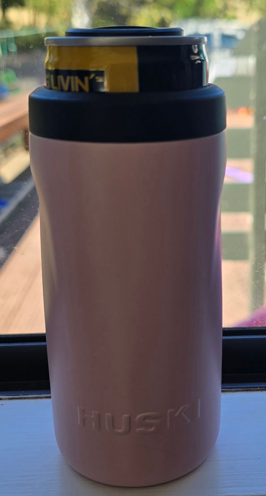 The Huski Slim Can Cooler fits most 8.4oz cans.